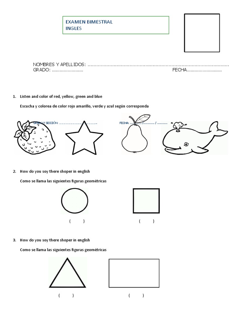 Escucha y colorea de color rojo amarillo, verde y azul según corresponda