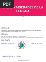 La variedad lingüística hace referencia a la diversidad de usos de una misma lengua,