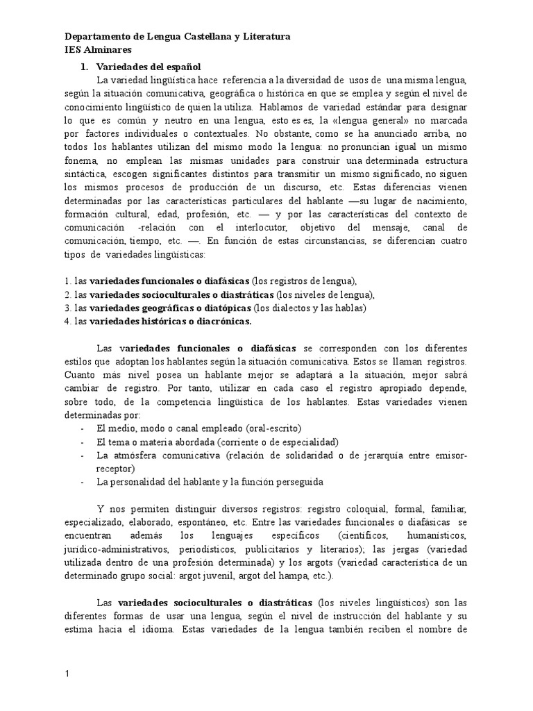 1. las variedades funcionales o diafásicas (los registros de lengua),