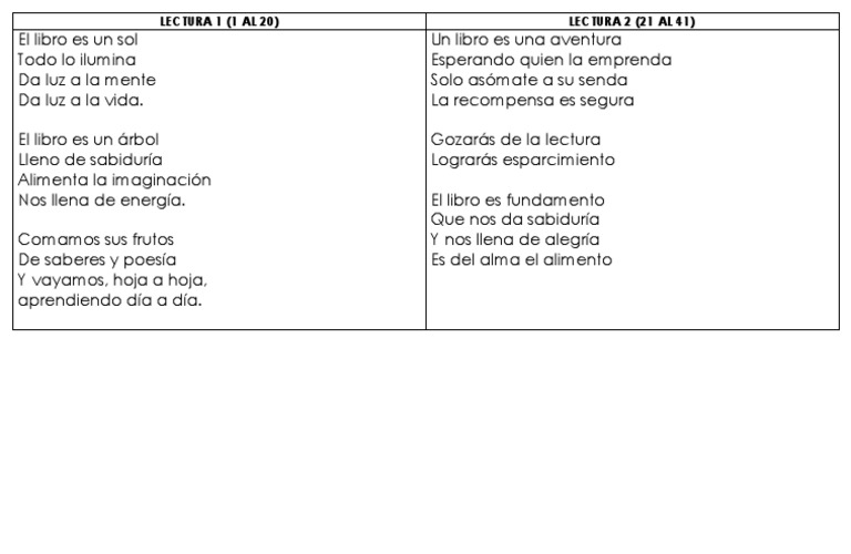 LECTURA 1 (1 AL 20) LECTURA 2 (21 AL 41)