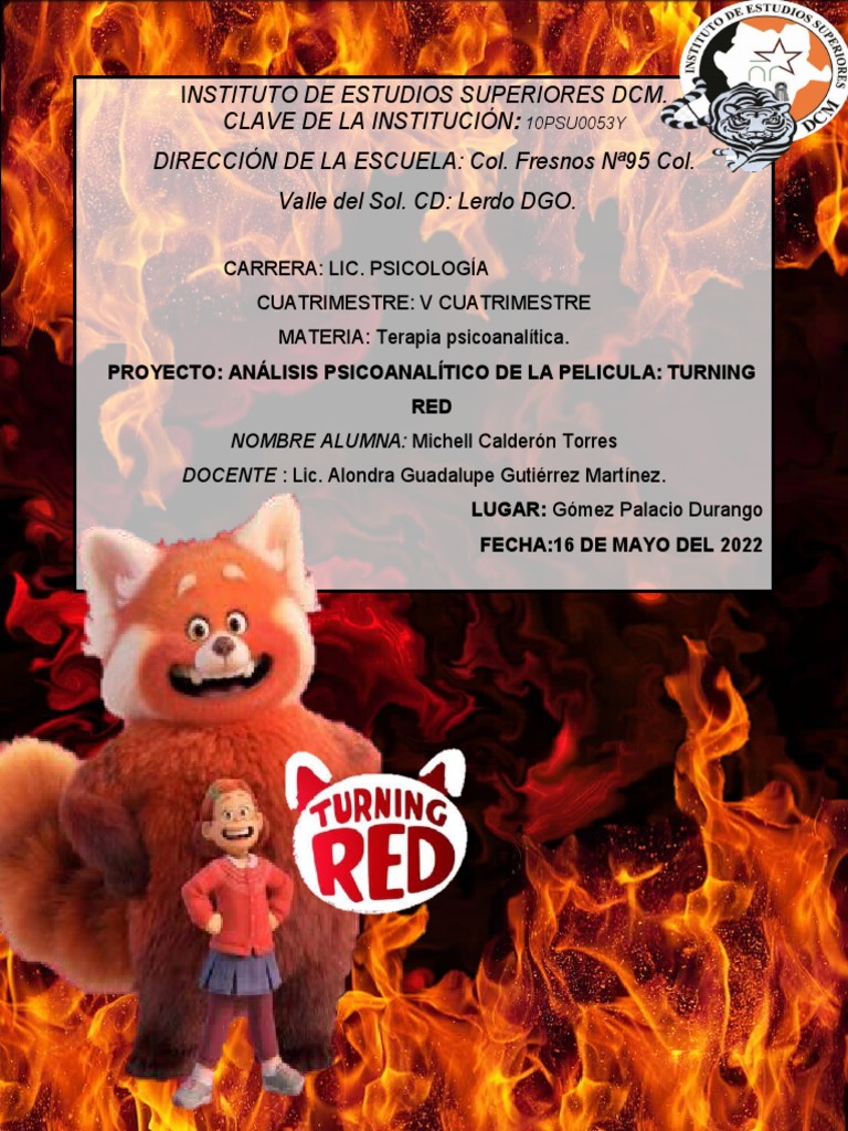 psicológico, esta no se queda atrás, ya que Turning Red tiene muchos mensajes