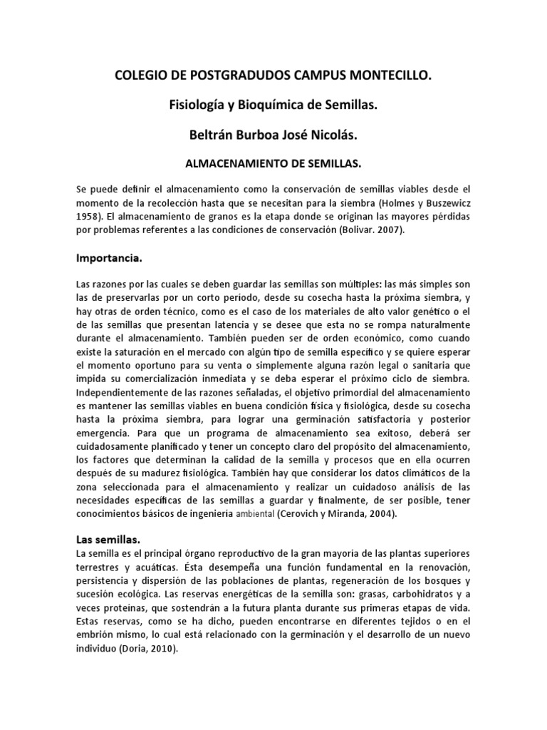 momento de la recolección hasta que se necesitan para la siembra (Holmes y Buszewicz