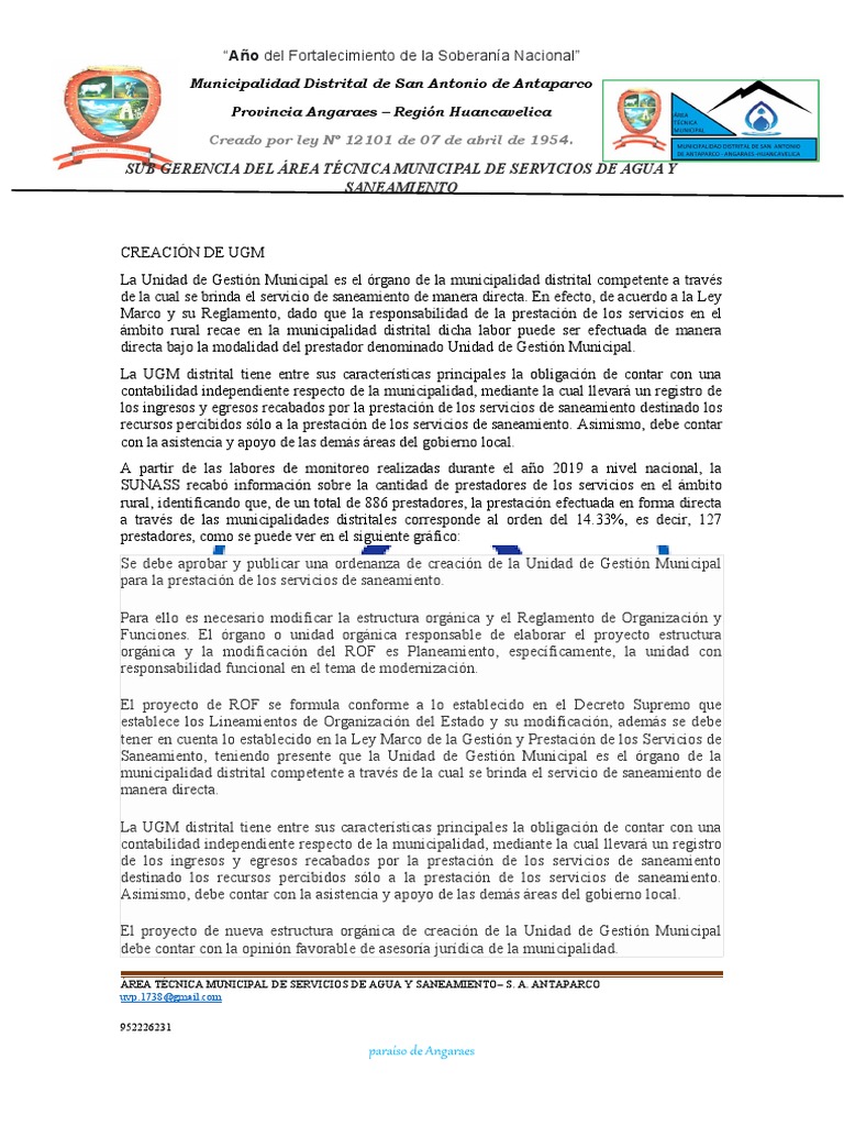 ÁREA TÉCNICA MUNICIPAL DE SERVICIOS DE AGUA Y SANEAMIENTO– S. A. ANTAPARCO