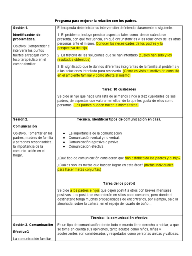 Programa para mejorar la relación con los padres.