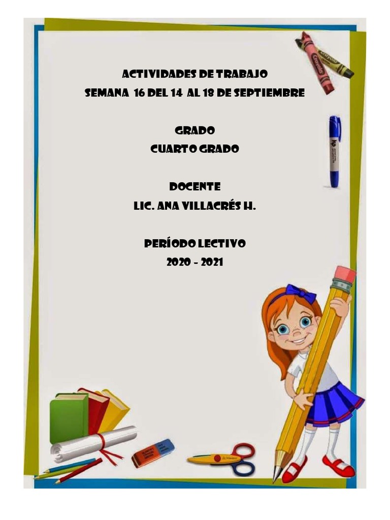 GRADO: Cuarto SEMANA: Del 14 al 18 de septiembre del 2020