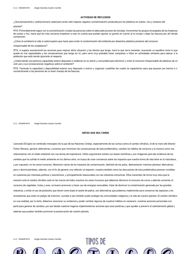 ¿Qué pensamiento y actitud tomaría usted para evitar este impacto negativo (contaminación) producida por los plásticos en suelos, ríos y océanos del