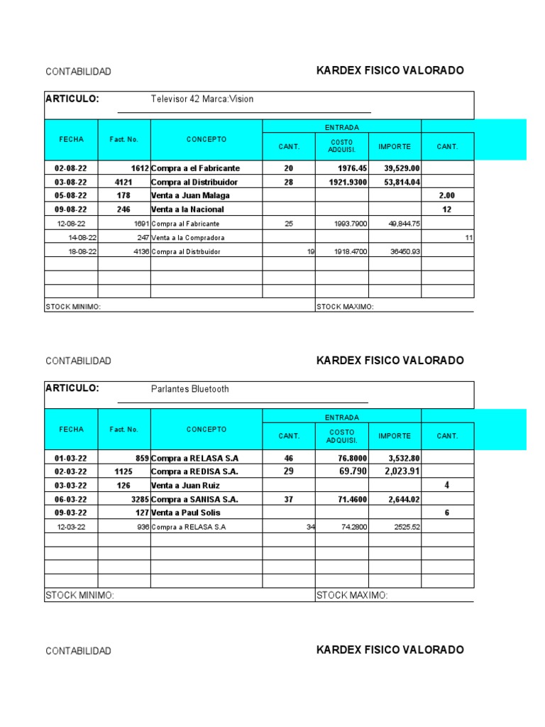 CONTABILIDAD KARDEX FISICO VALORADO