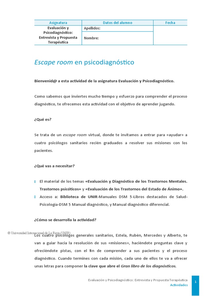 diagnóstico, te ofrecemos esta actividad con el objetivo de aprender jugando.