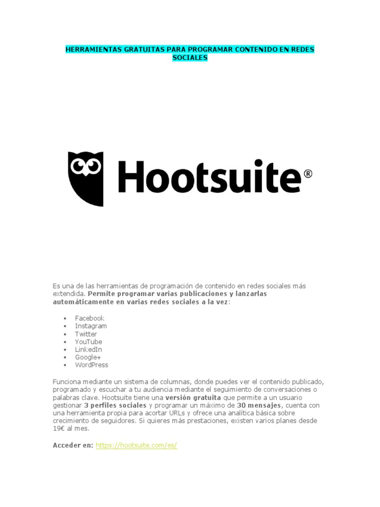 palabras clave. Hootsuite tiene una versión gratuita que permite a un usuario