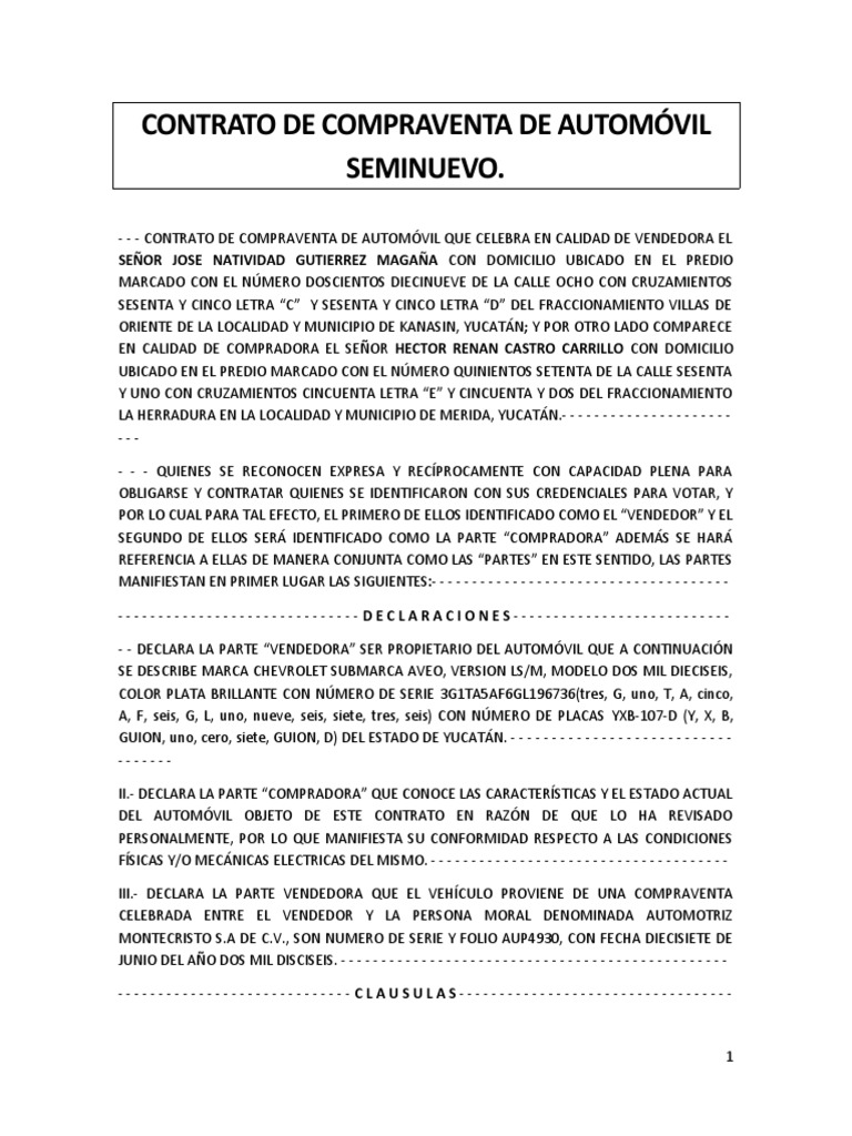 CONTRATO DE COMPRAVENTA DE AUTOMÓVIL