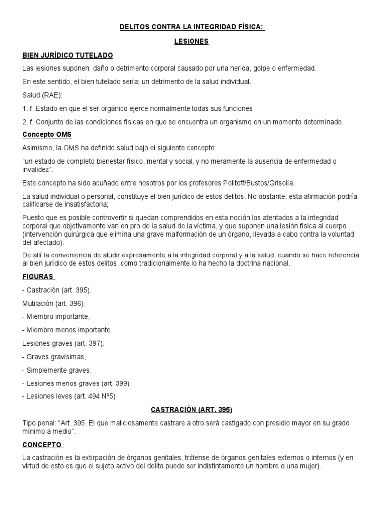 Tipo penal: “Art. 395. El que maliciosamente castrare a otro será castigado con presidio mayor en su grado