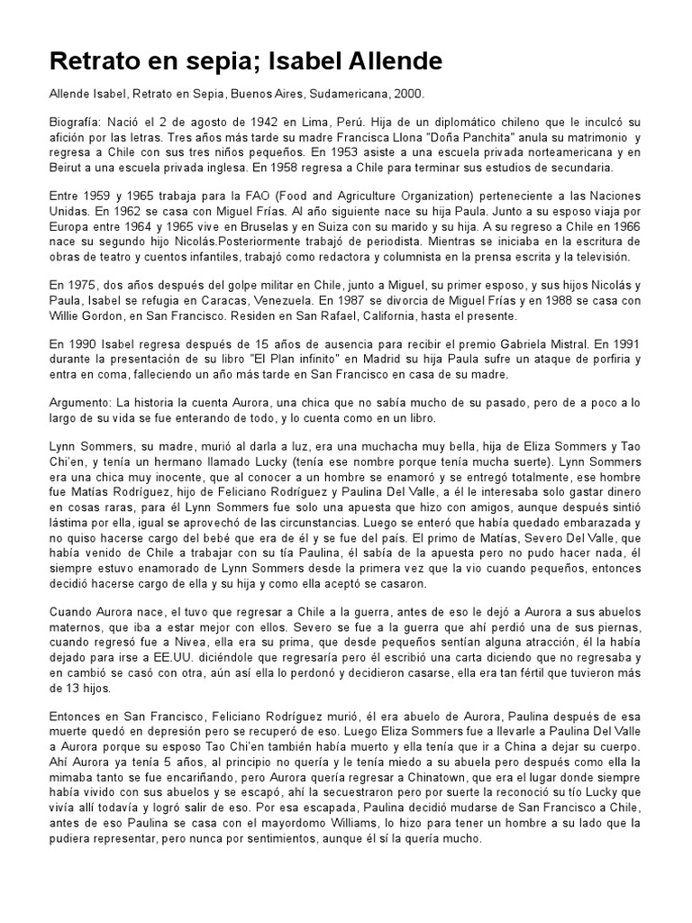 Allende Isabel, Retrato en Sepia, Buenos Aires, Sudamericana, 2000.