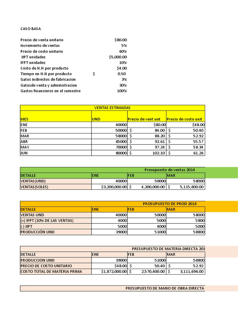 PRESUPUESTO DE MANO DE OBRA DIRECTA 2014