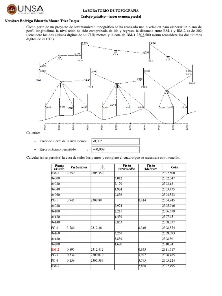 (considere los dos últimos dígitos de su CUI) metros y la cota de BM-1 2302,500 msnm (considere los dos últimos