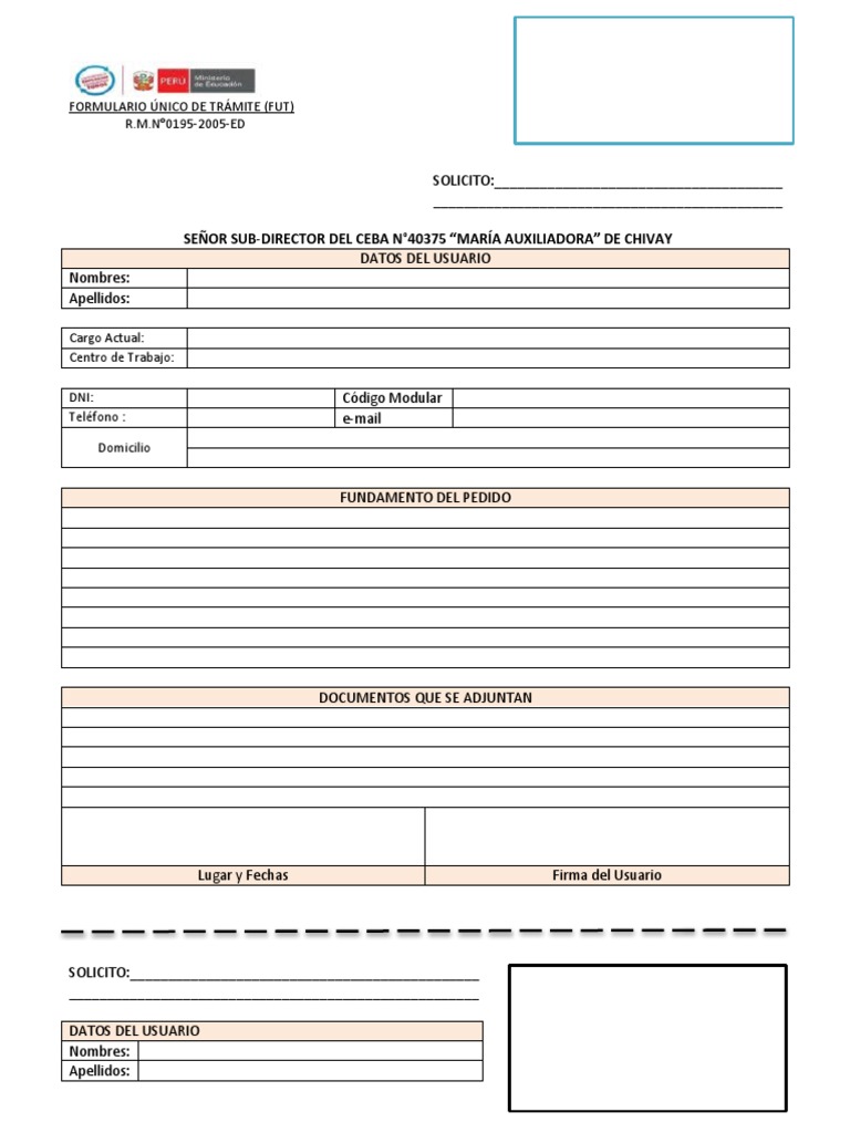 SEÑOR SUB-DIRECTOR DEL CEBA N°40375 “MARÍA AUXILIADORA” DE CHIVAY