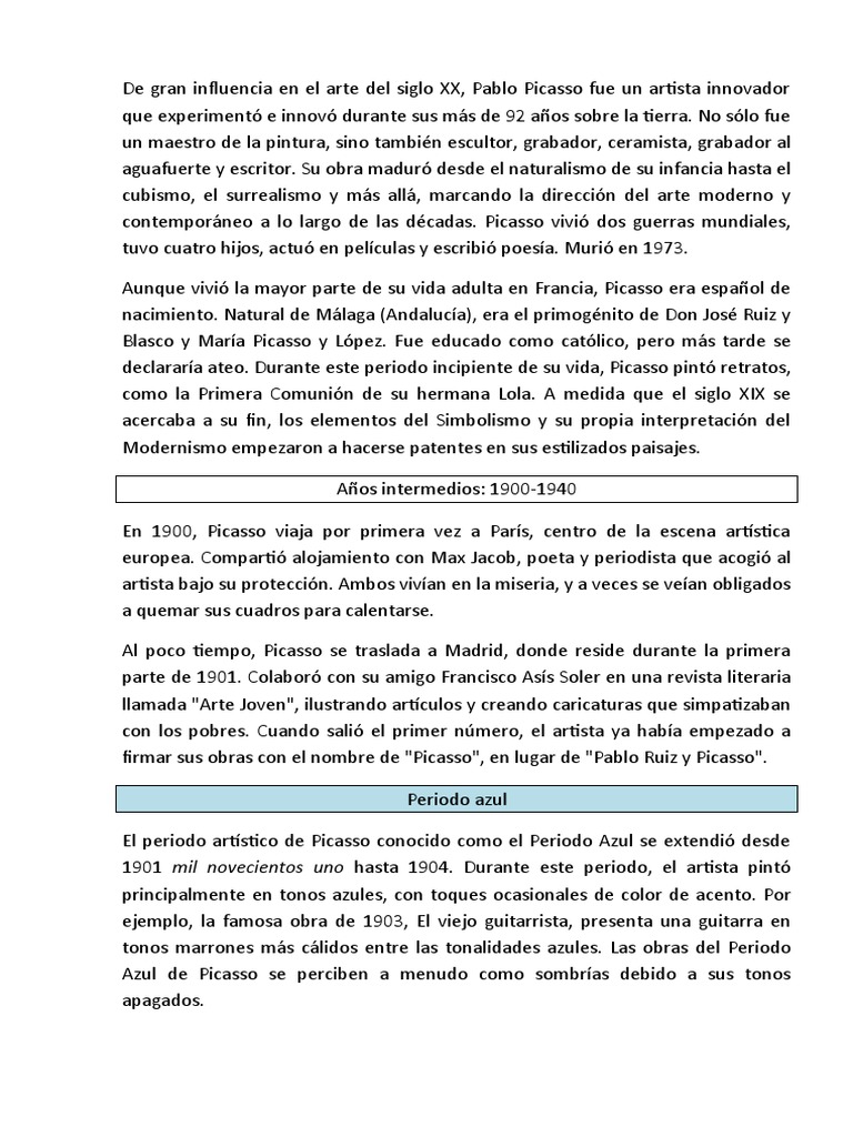 contemporáneo a lo largo de las décadas. Picasso vivió dos guerras mundiales,
