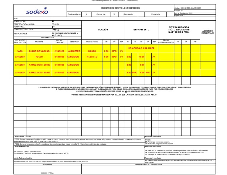 REGISTRO DE CONTROL DE PRODUCCIÓN Código: SDX-GHSEQ-MACC-R-006