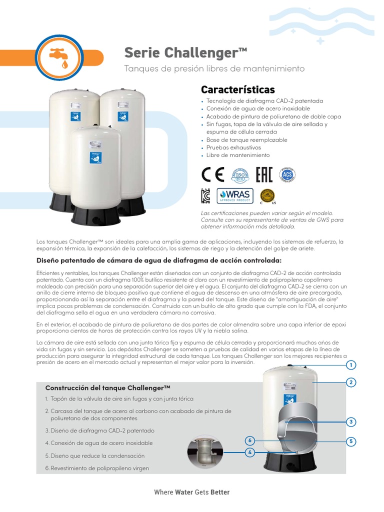 Eficientes y rentables, los tanques Challenger están diseñados con un conjunto de diafragma CAD-2 de acción controlada