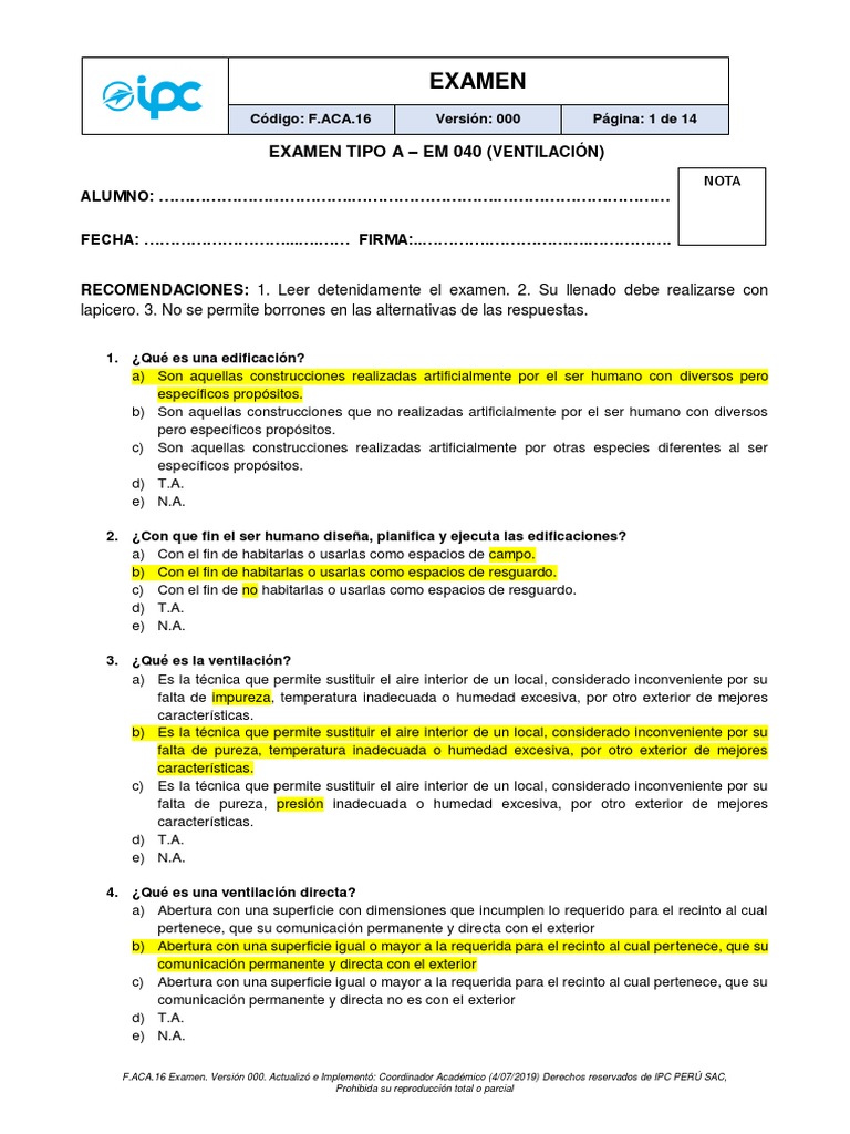 F.ACA.16 Examen. Versión 000. Actualizó e Implementó: Coordinador Académico (4/07/2019) Derechos reservados de IPC PERÚ SAC,