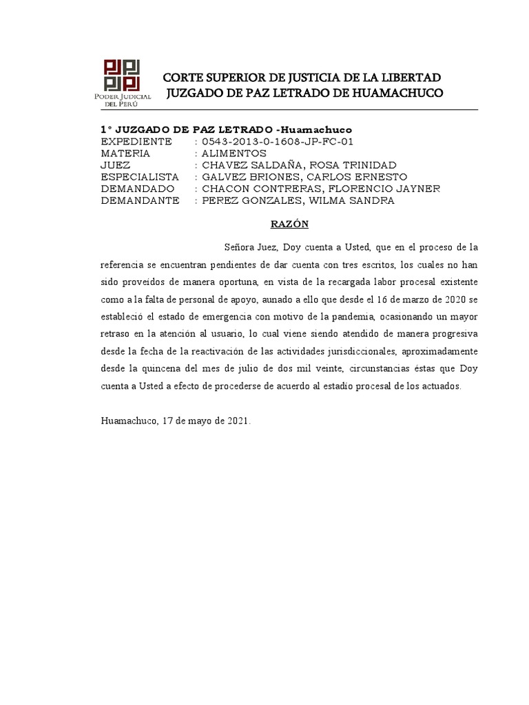 EXPEDIENTE : 0543-2013-0-1608-JP-FC-01