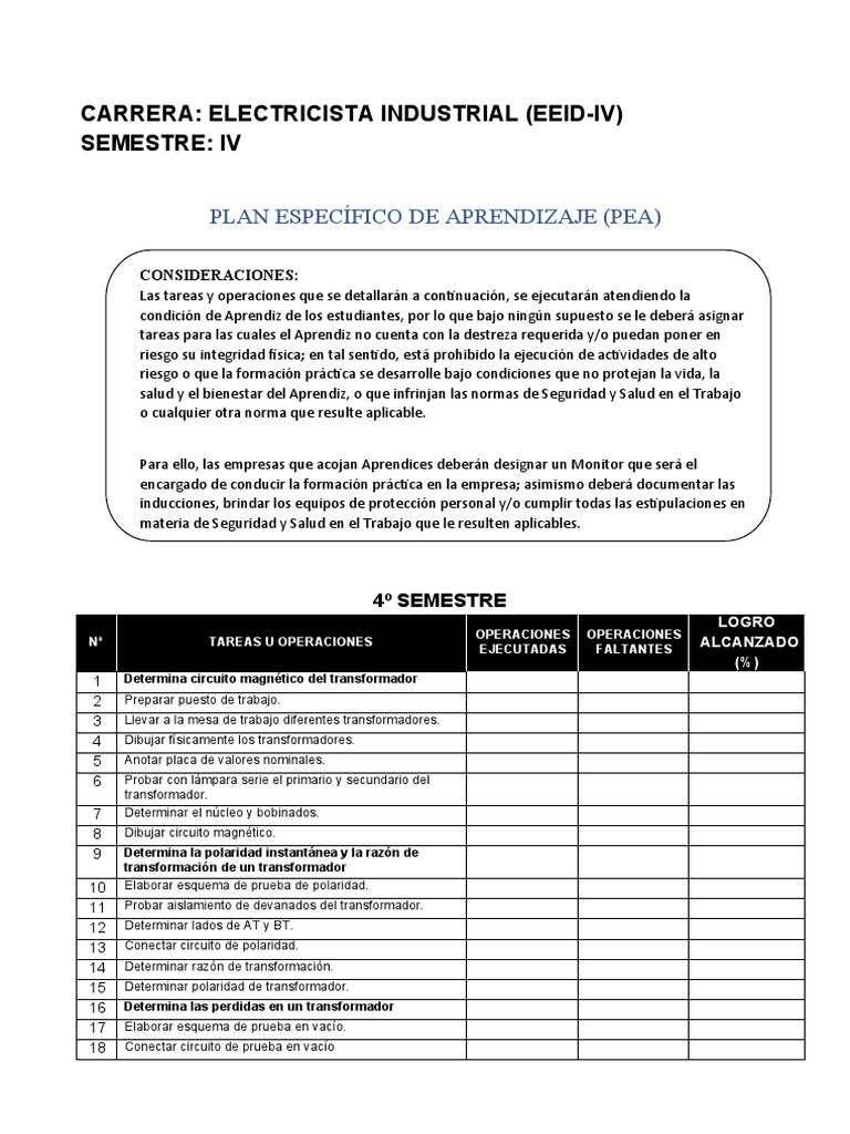 CARRERA: ELECTRICISTA INDUSTRIAL (EEID-IV)