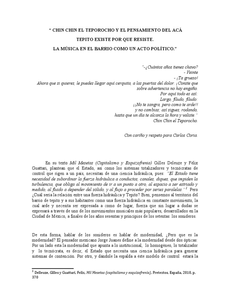 En su texto Mil Mesetas (Capitalismo y Esquizofrenia) Gilles Deleuze y Félix