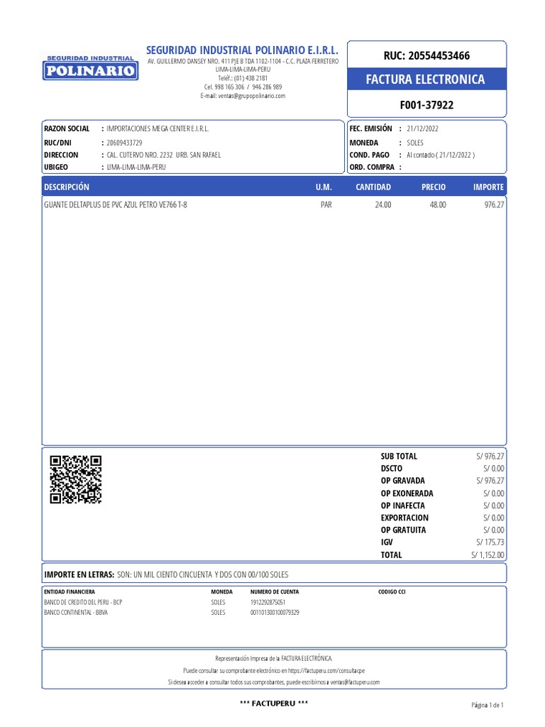 RAZON SOCIAL : IMPORTACIONES MEGA CENTER E.I.R.L. FEC. EMISIÓN : 21/12/2022