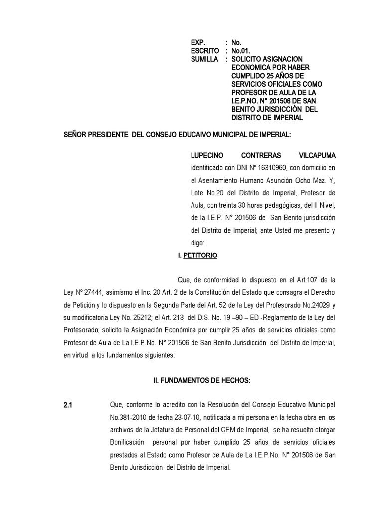 Profesorado; solicito la Asignación Económica por cumplir 25 años de servicios oficiales como