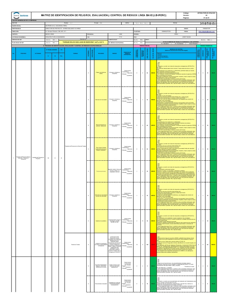 MATRIZ DE IDENTIFICACIÓN DE PELIGROS, EVALUACIÓN y CONTROL DE RIESGOS LÍNEA BASE (LB-IPERC) Versión: 02
