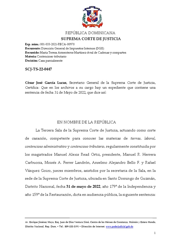 Sentencia Contenciosa Tributaria SCJ RD