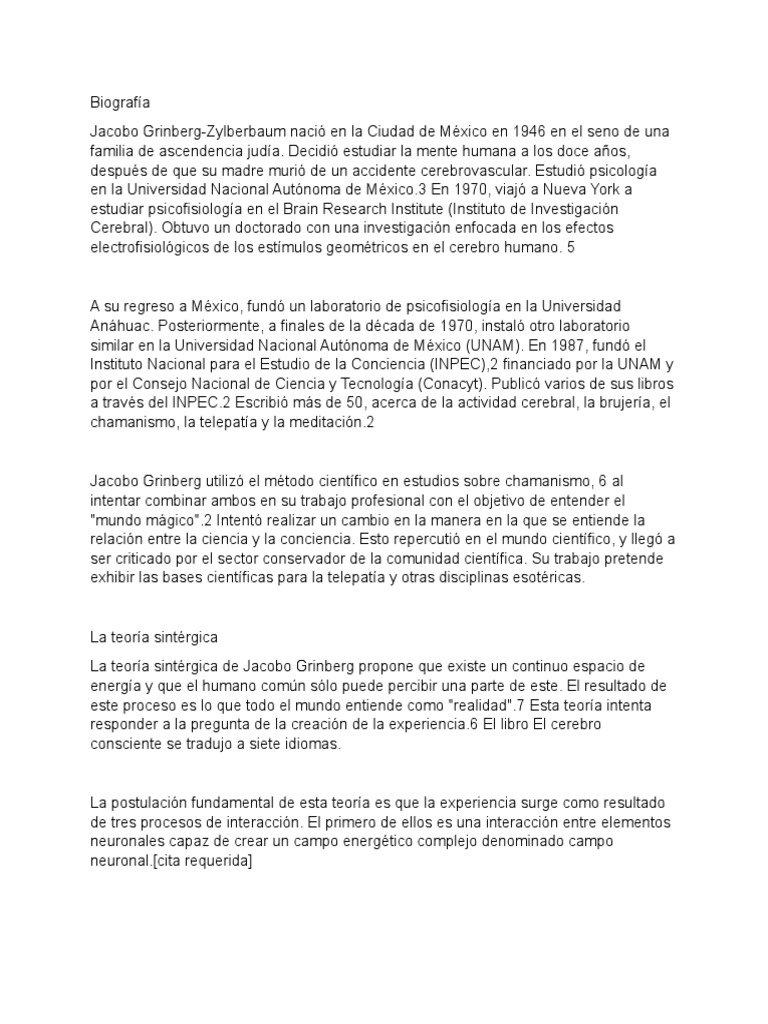 Jacobo Grinberg-Zylberbaum nació en la Ciudad de México en 1946 en el seno de una