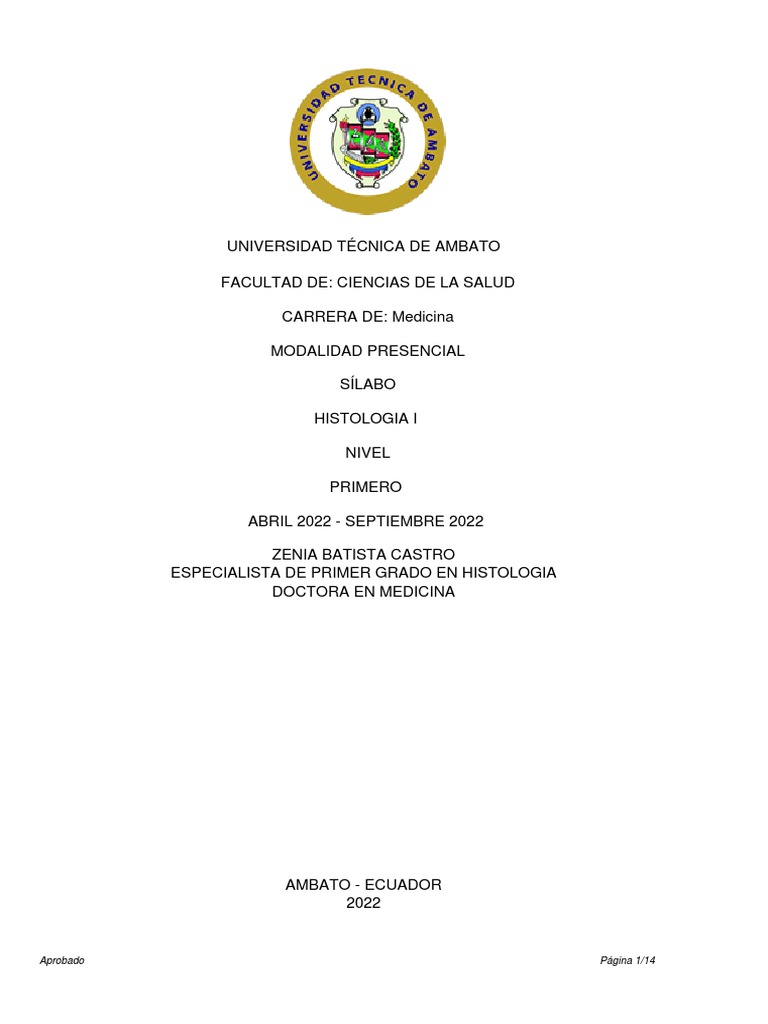 La asignatura de Histología I se integra dentro del proceso de formación científica básica del profesional de la salud, con la finalidad de