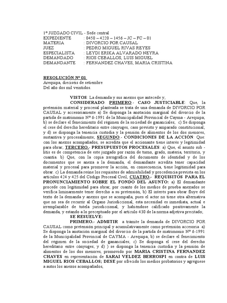 DEMANDADO : RIOS CEBALLOS, LUIS MIGUEL