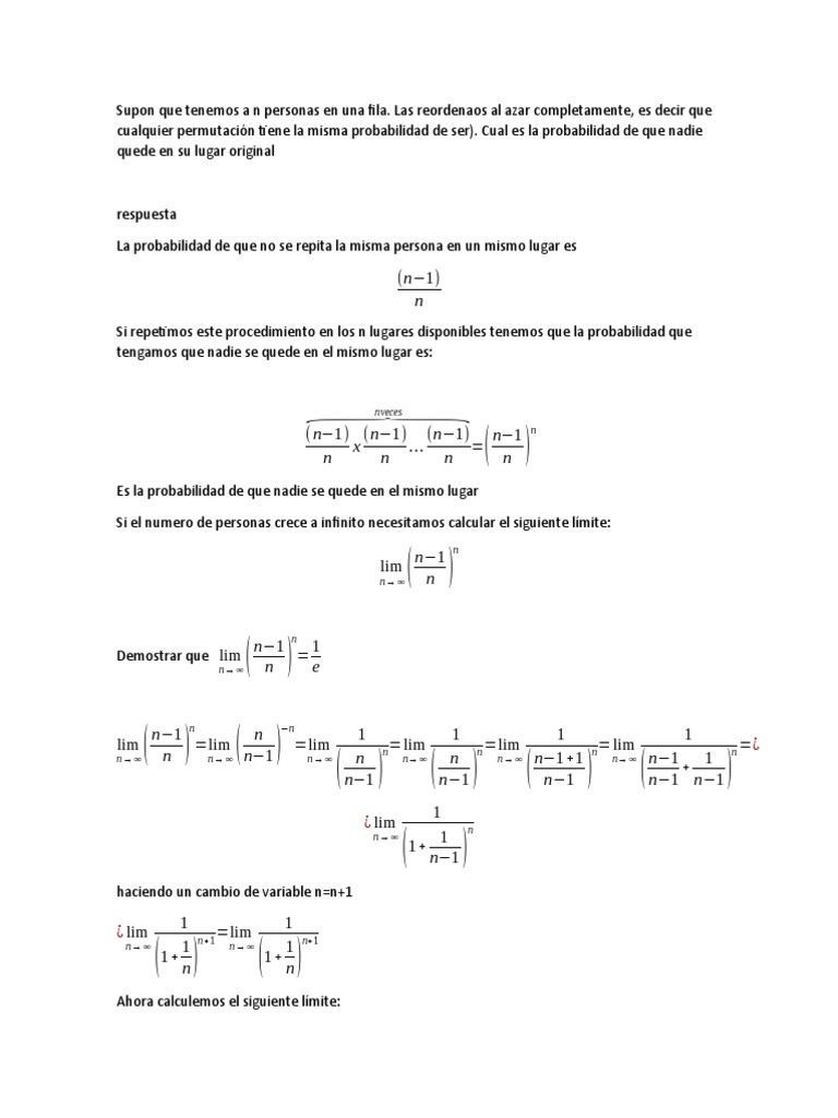 cualquier permutación tiene la misma probabilidad de ser). Cual es la probabilidad de que nadie