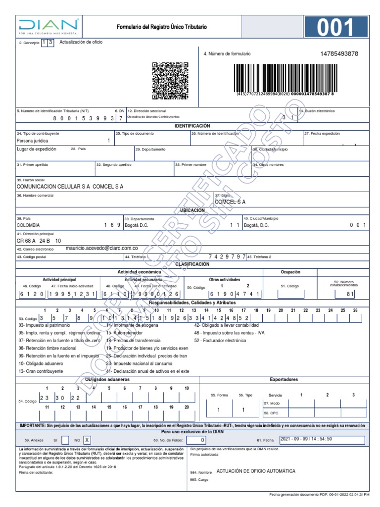 IMPORTANTE: Sin perjuicio de las actualizaciones a que haya lugar, la inscripción en el Registro Único Tributario -RUT-, tendrá vigencia indefinida y en consecuencia no se exigirá su renovación