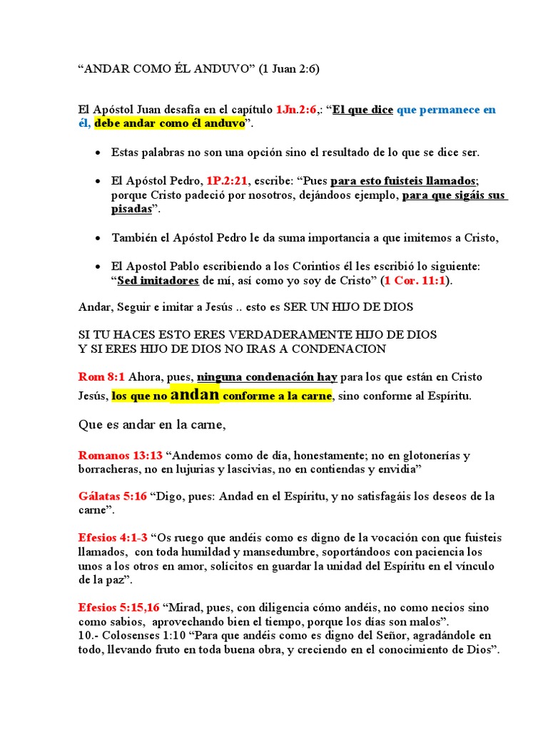 versículos más adelante: “andar como él anduvo” (1 Juan 2:6), DEBEMOS