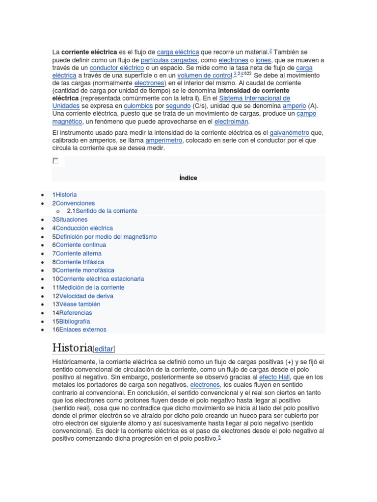 Una corriente de electricidad existe en un lugar cuando una carga neta se transporta desde