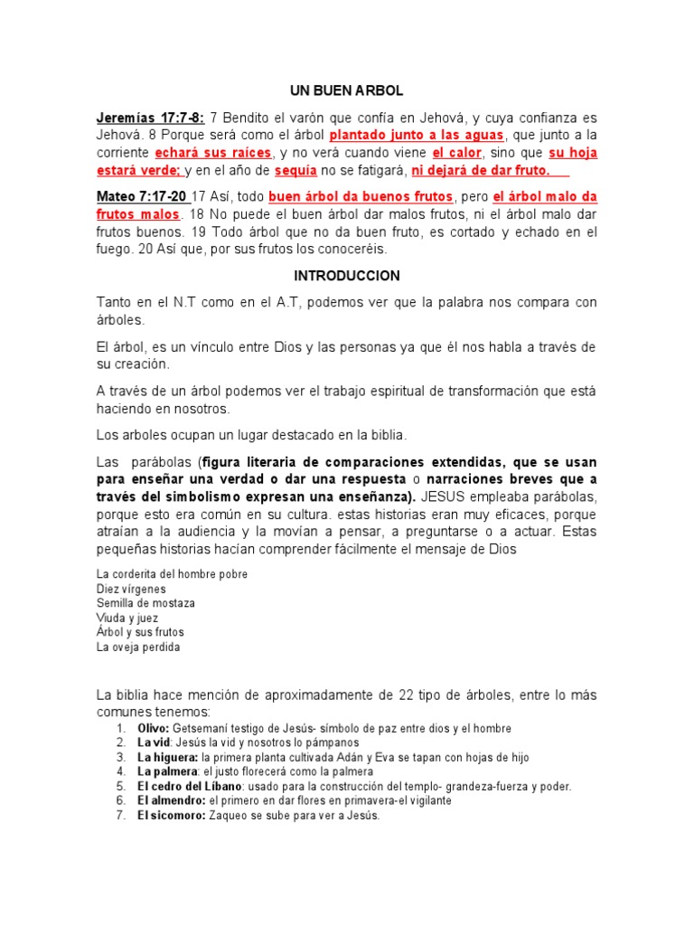 Mateo 7:17-20 17 Así, todo buen árbol da buenos frutos, pero el árbol malo da