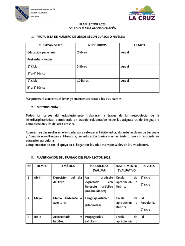 3. PLANIFICACIÓN DEL TRABAJO DEL PLAN LECTOR 2023:
