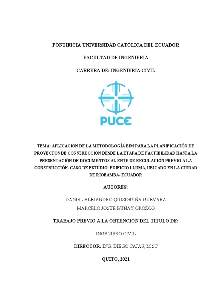 A la facultad de ingeniería civil de la Pontificia Universidad Católica del Ecuador que me supo guiar
