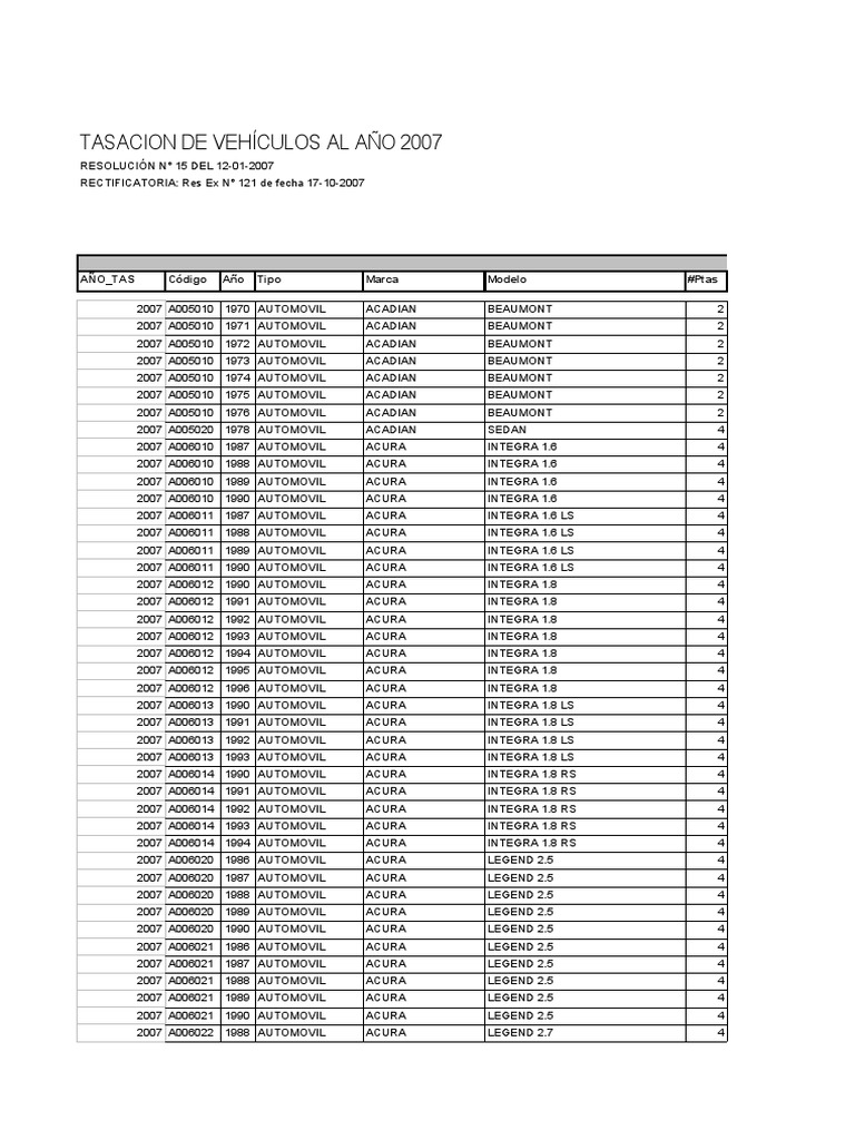 Tasación de Vehículos 2007