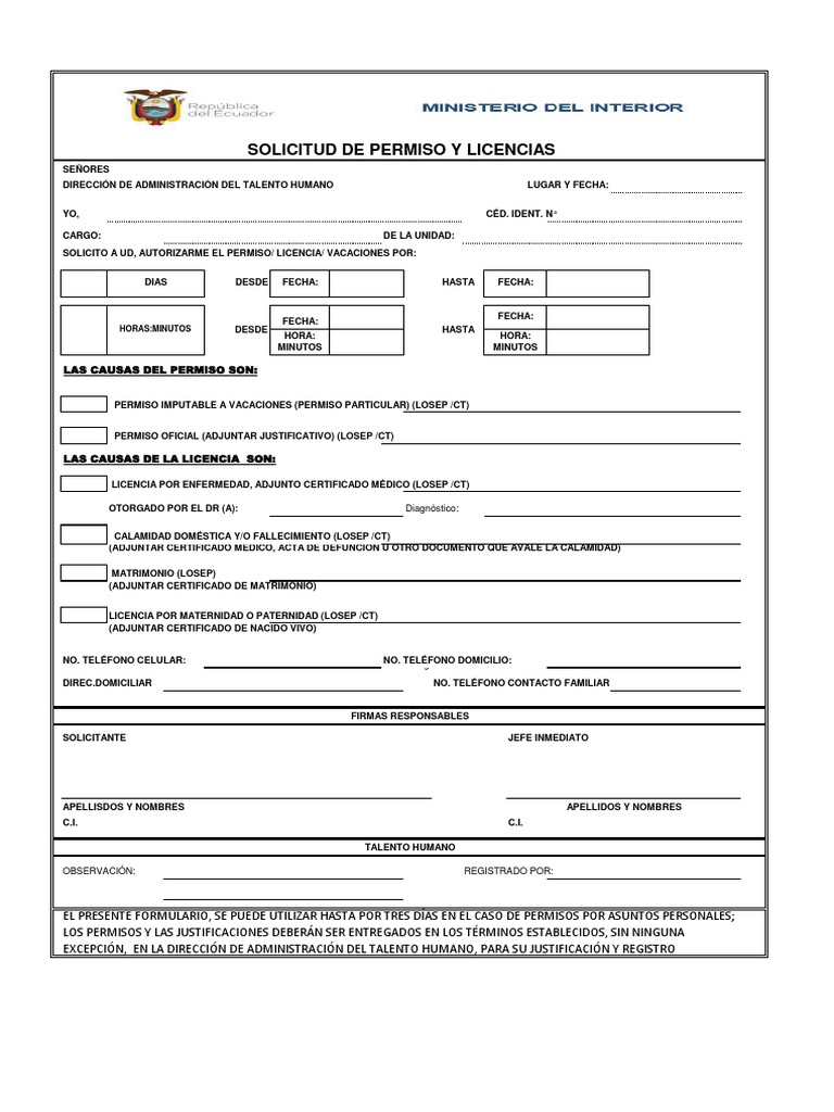 PERMISO OFICIAL (ADJUNTAR JUSTIFICATIVO) (LOSEP /CT)
