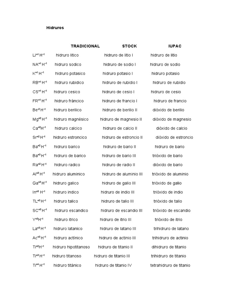 Cr+2 H-1 hidruro hipocromoso hidruro de cromo II dihidruro de cromo