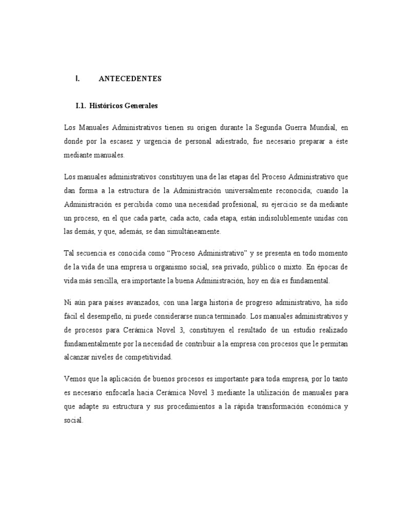 de procesos para Cerámica Novel 3, constituyen el resultado de un estudio realizado