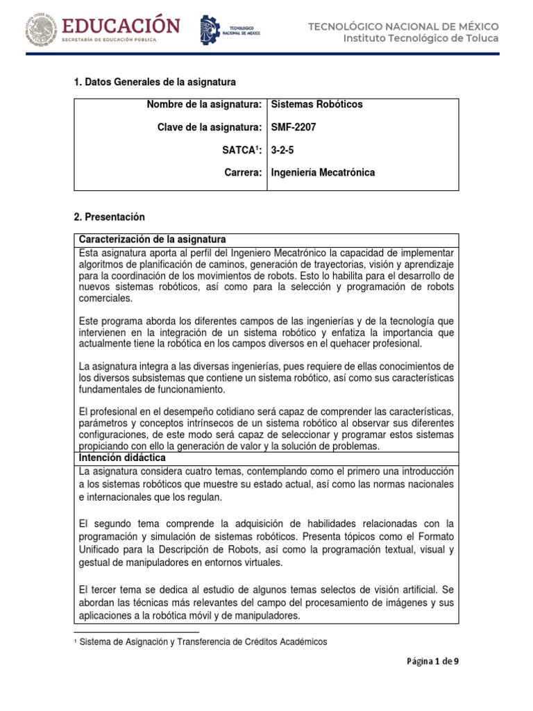 programación y simulación de sistemas robóticos. Presenta tópicos como el Formato