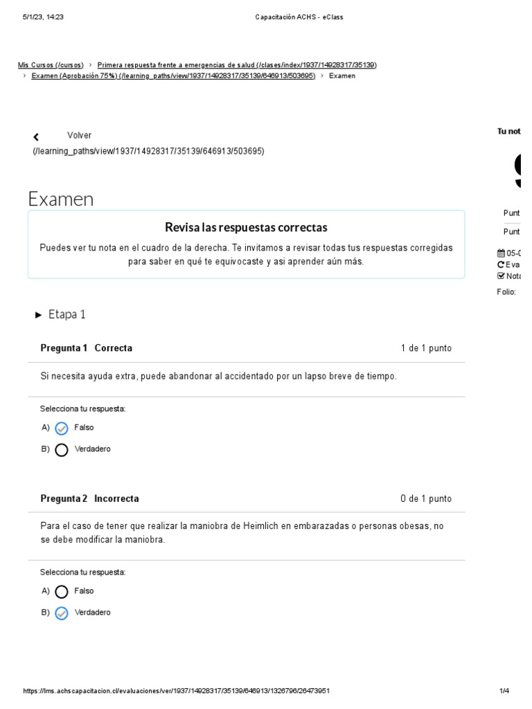 5/1/23, 14:23 Capacitación ACHS - eClass