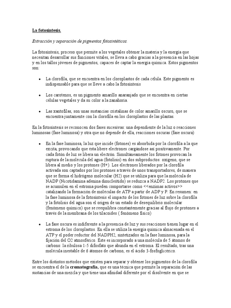 Extracción y separación de pigmentos fotosintéticos.