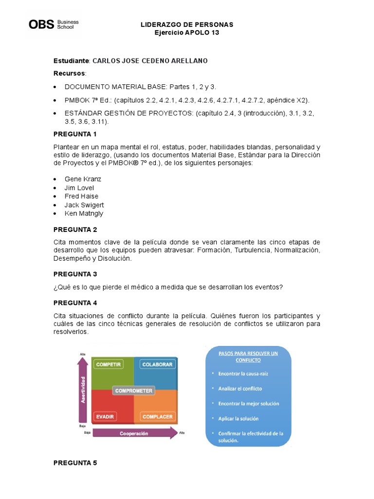 cuáles de las cinco técnicas generales de resolución de conflictos se utilizaron para