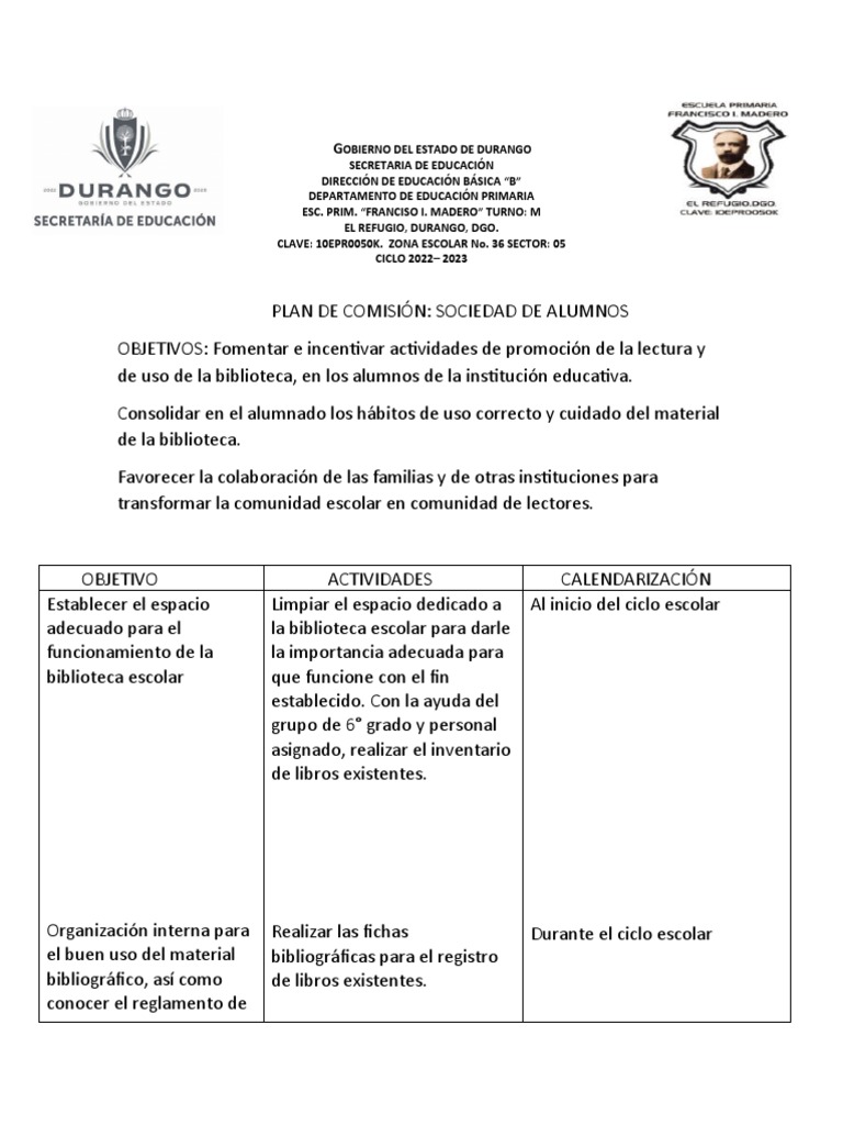 PLAN DE COMISIÓN: SOCIEDAD DE ALUMNOS
