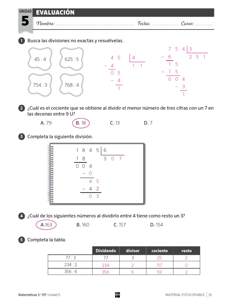 Matemáticas 3.º EP. Unidad 5 MATERIAL FOTOCOPIABLE 35